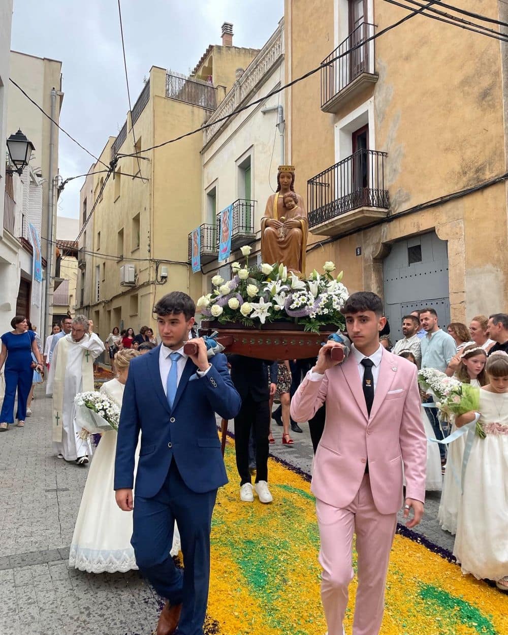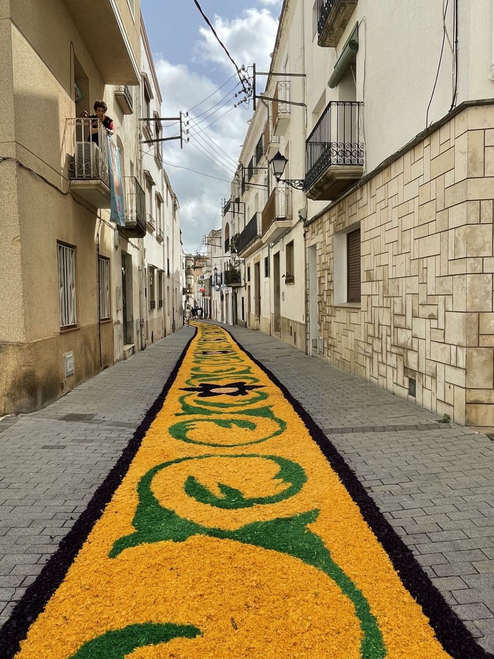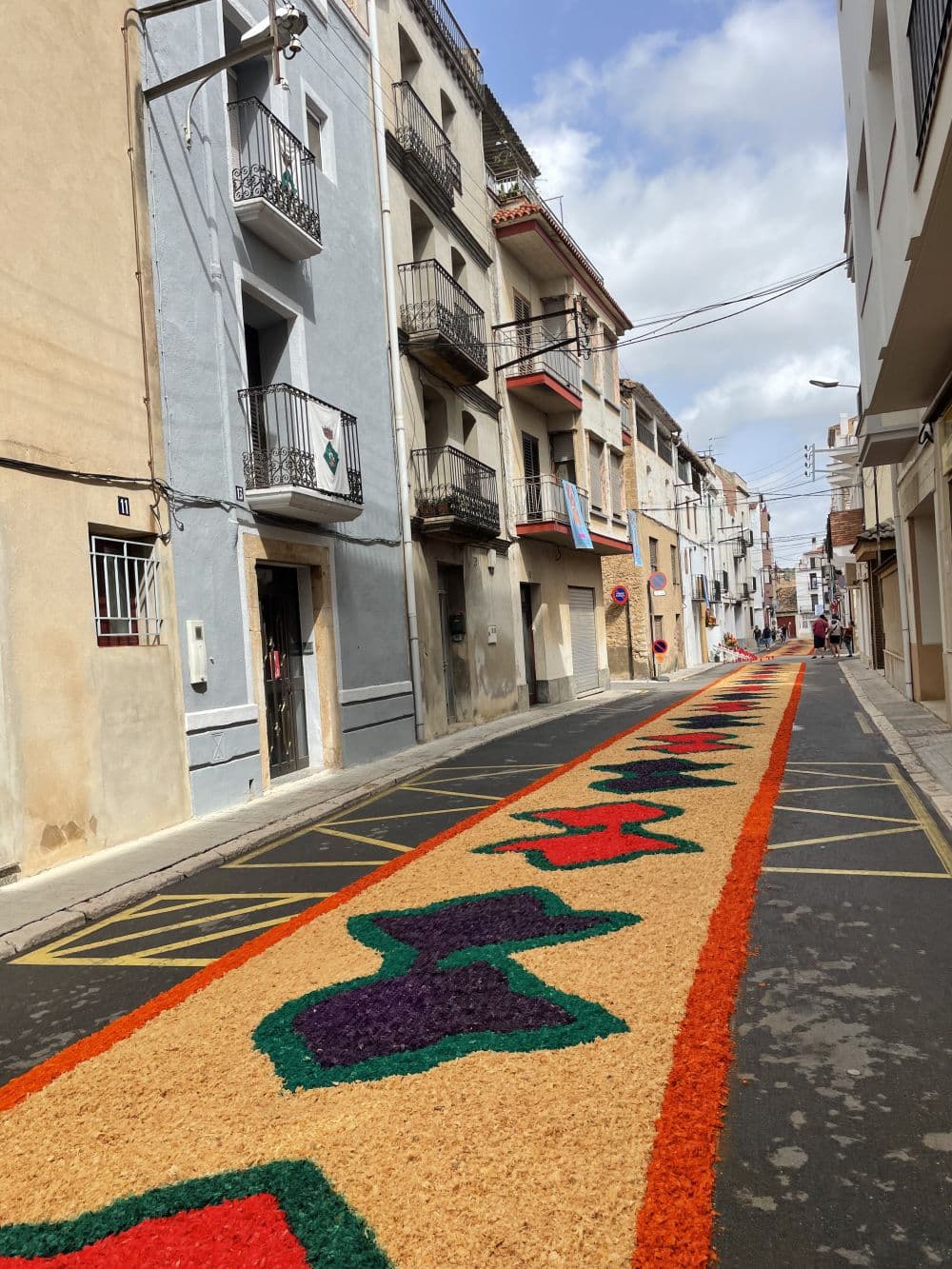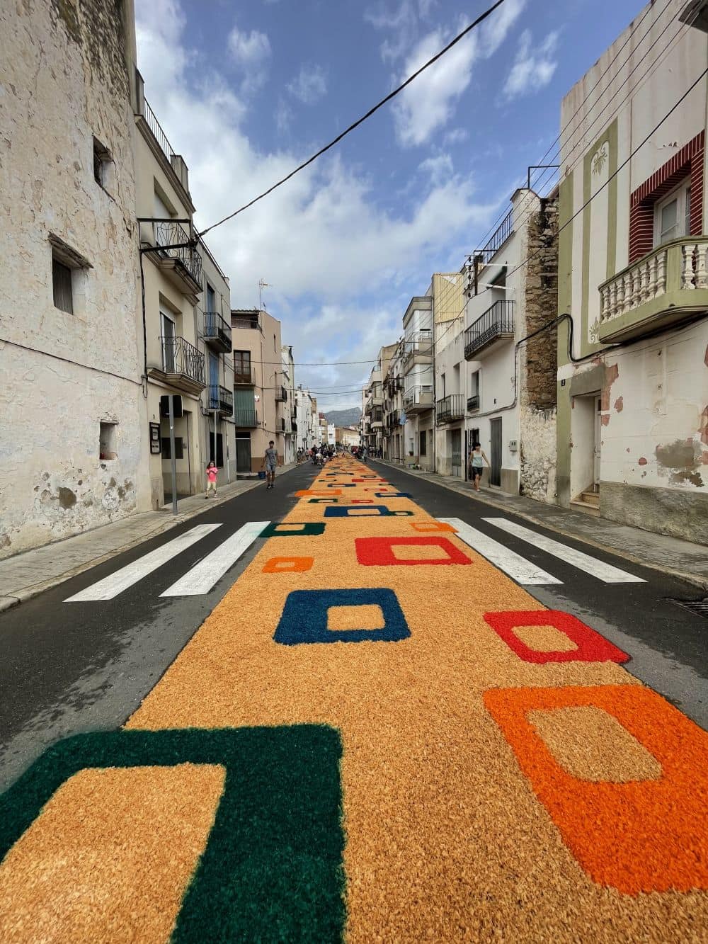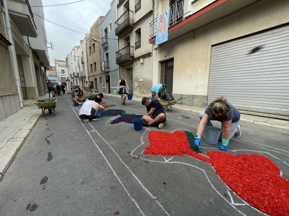 Al matí, els carrers s'omplen de gent que, amb una activitat frenètica, crea petites obres d'art aprofitant diferents materials, com ara la "serritja" i el “caragolillo”. Aquests materials tintats de colors i representant diverses formes, es converteixen en catifes efímeres que omplen d’alegria, de festa i de visitants els carrers del municipi.
